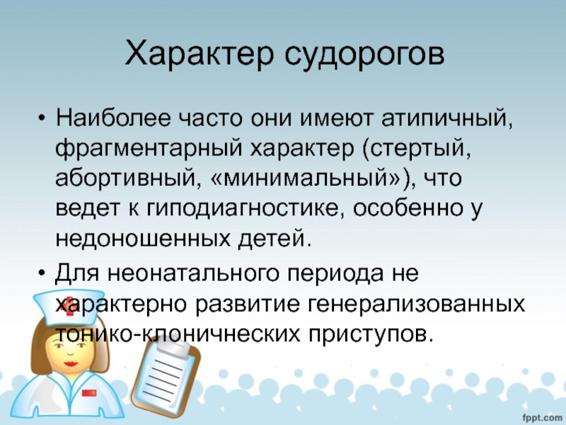 Судорожные приступы у новорожденных, особенно родившихся недоношенными, характеризуются