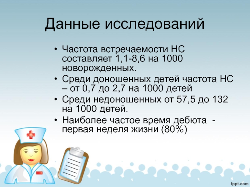 Частота встречаемости НС составляет 1,1-8,6 на 1000 новорожденных.