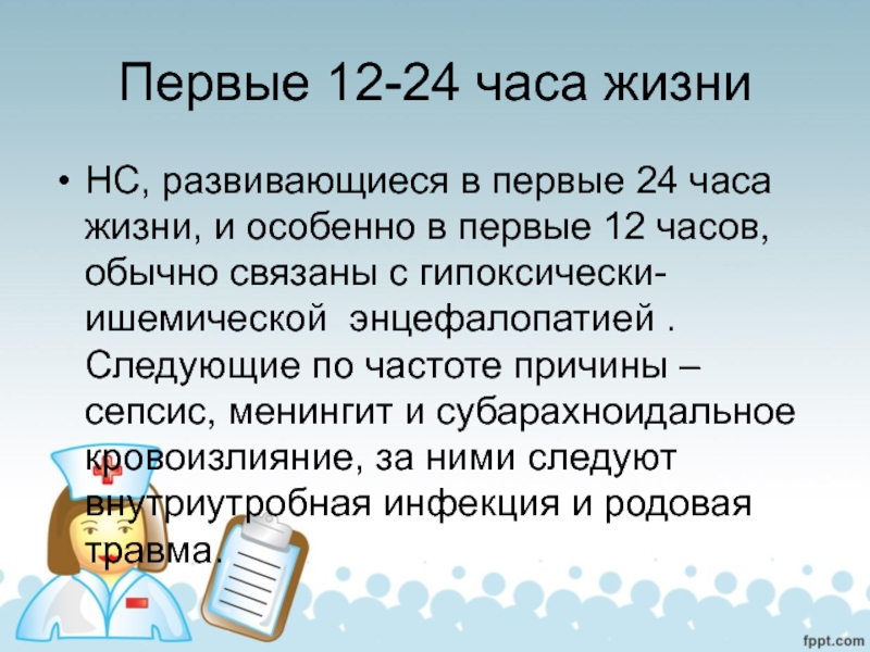 и особенно в первые 12 часов, обычно связаны с гипоксически-ишемической