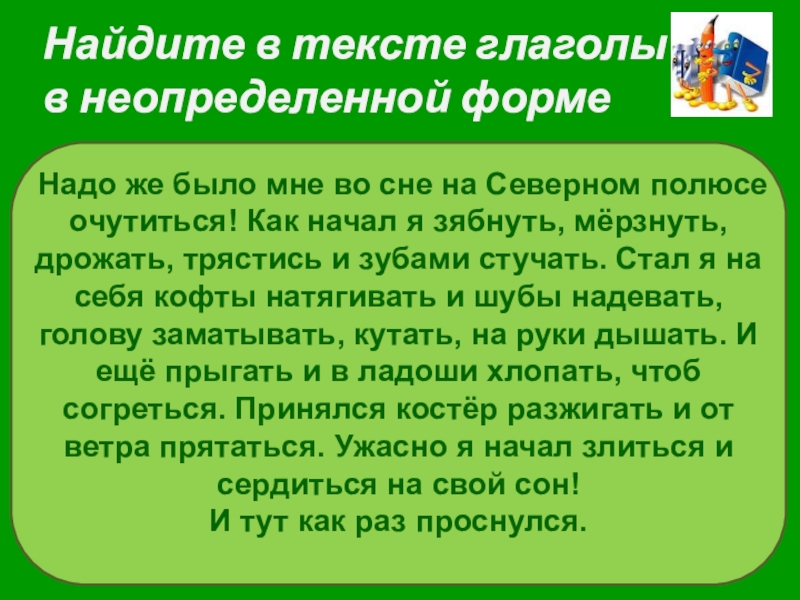 Вывод: глагол в неопределенной форме может быть любым членом предложения