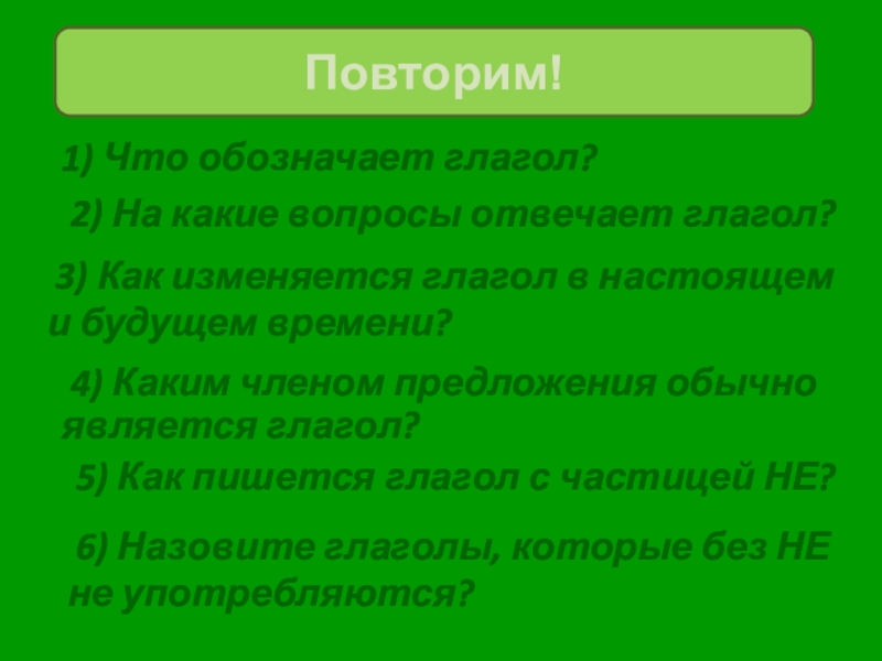 6) Назовите глаголы, которые без НЕ не употребляются?