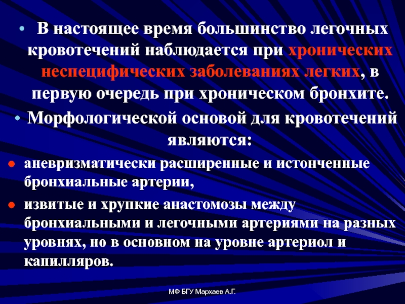 кровотечений наблюдается при хронических неспецифических заболеваниях легких, в первую очередь