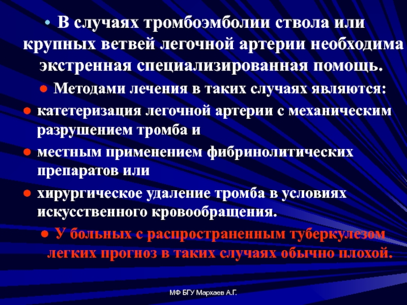 ветвей легочной артерии необходима экстренная специализированная помощь.