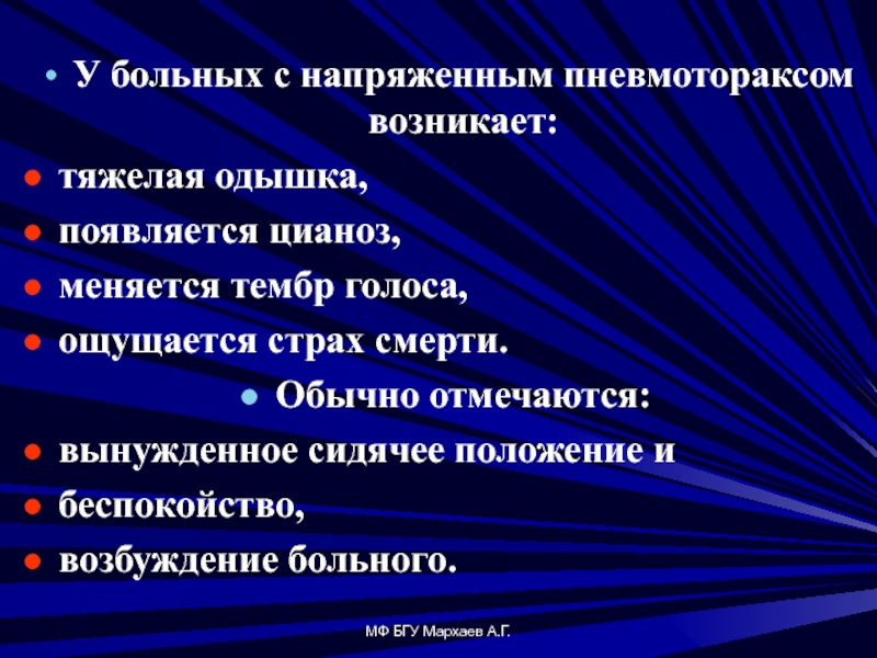 пневмотораксе или большом скоплении жидкости в плевральных полостях больным с