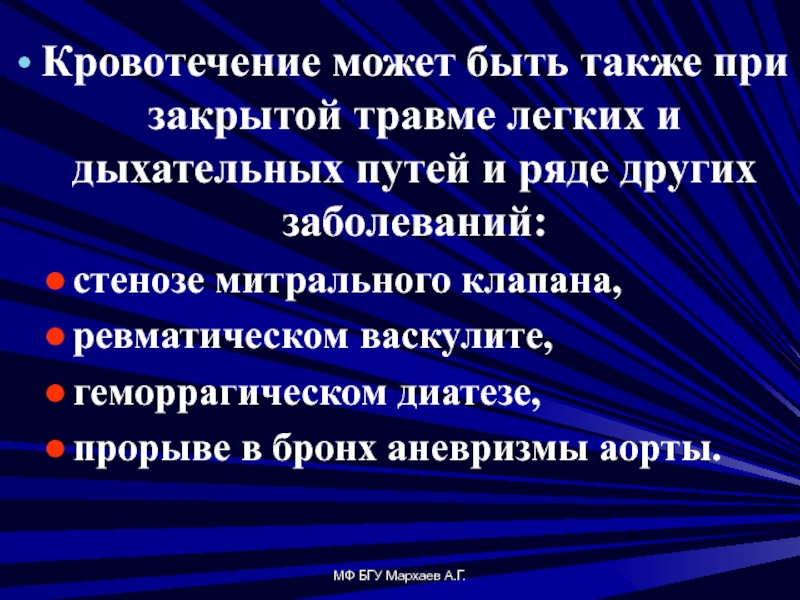 отличать от кровотечений при других бронхолегочных заболеваниях: