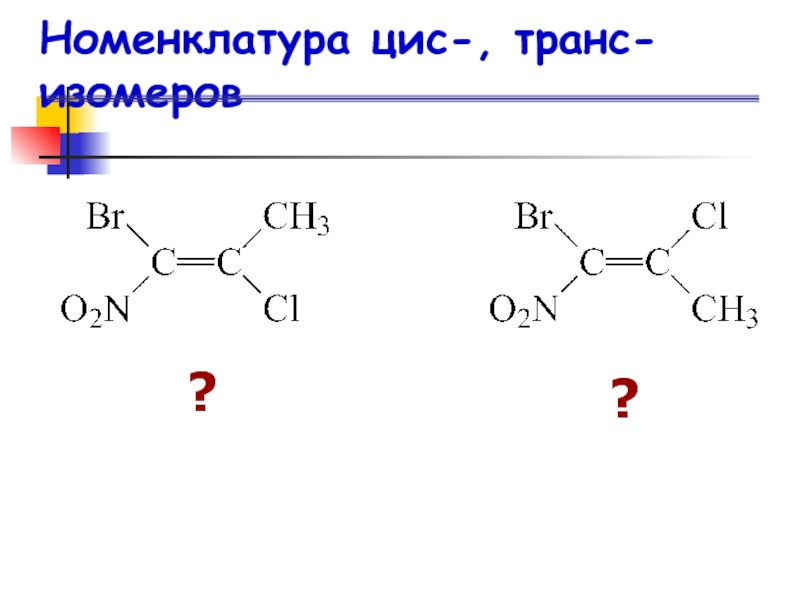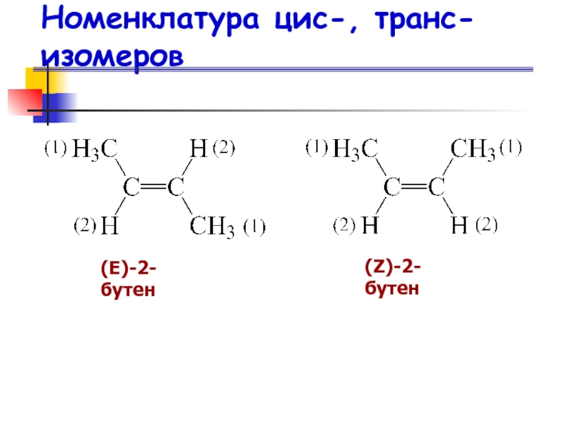2. Если две наиболее старшие группы расположены по одну сторону от плоскости -связи, то конфигурация заместителей обозначается символом Z, если же эти группы находятся по разные стороны от плоскости -связи, то конфигурация обозначается символом Е.
