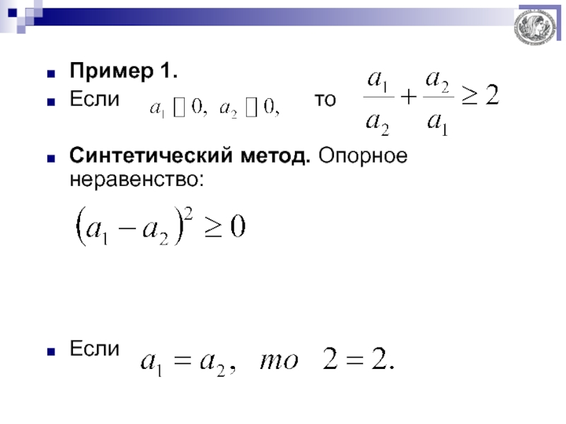 2. Синтетический методСуть метода состоит в том, что при доказательстве используются опорные неравенства (очевидные или доказанные ранее).