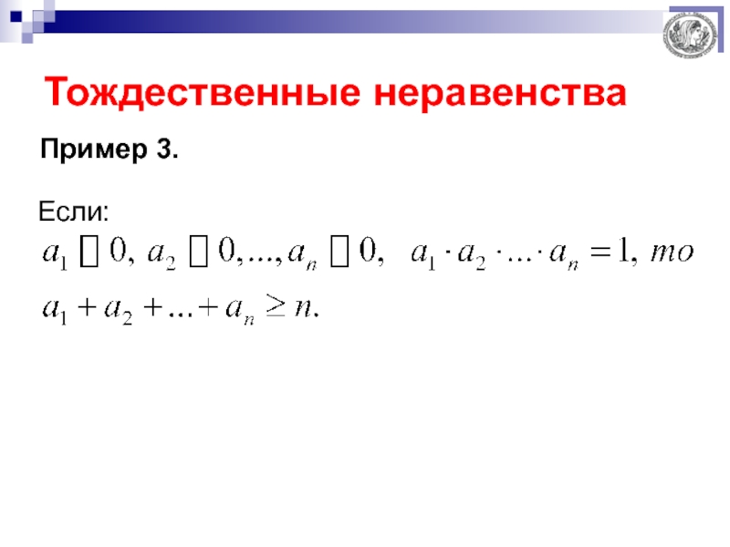 3. Тождественные неравенстваНеравенство называется тождественным, если оно выполняется при любых системах значений из области допустимых значений.