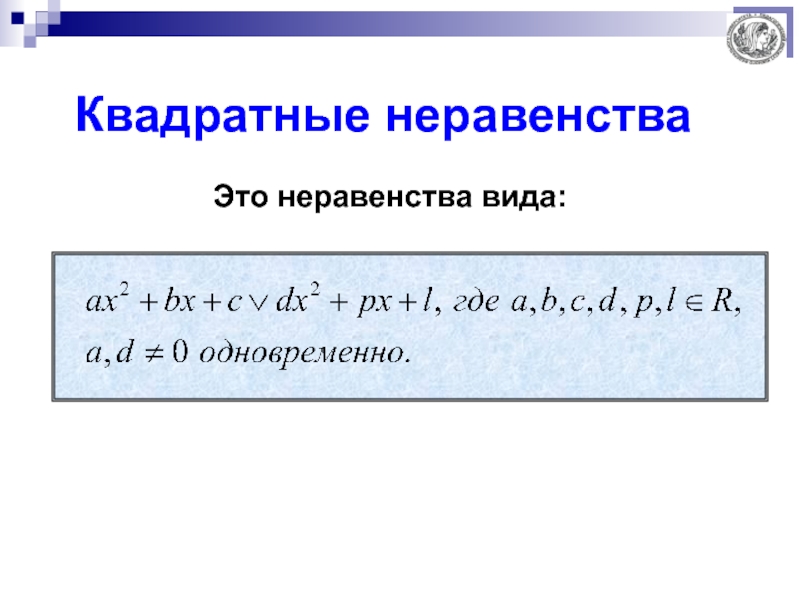 Алгоритм решения квадратного неравенства 1. Решить уравнение: