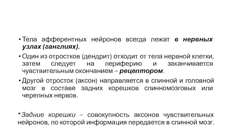 Слайд 8Тела афферентных нейронов всегда лежат в нервных узлах (ганглиях).