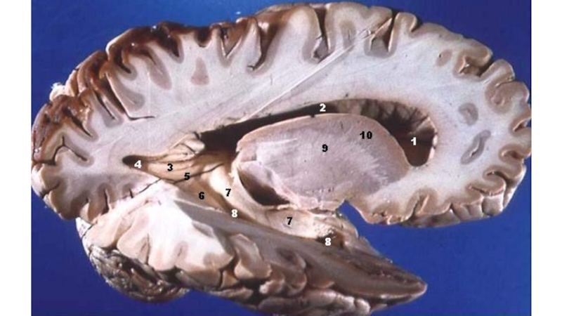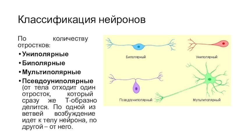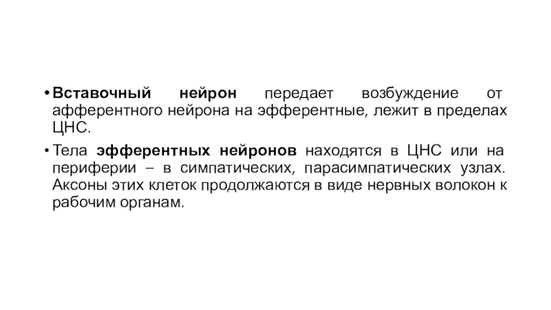 Слайд 10Вставочный нейрон передает возбуждение от афферентного нейрона на эфферентные, лежит