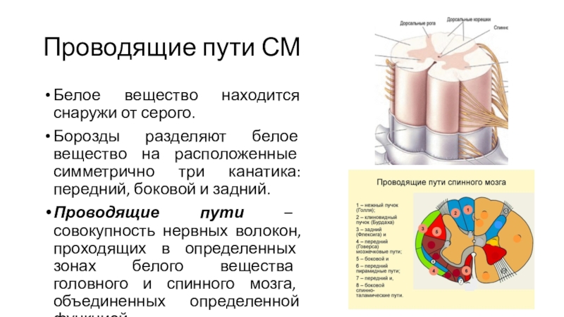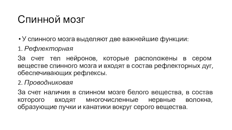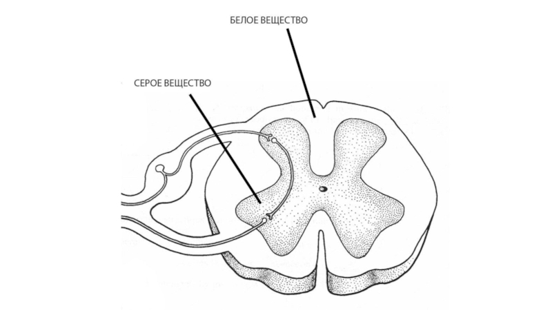За счет наличия в спинном мозге белого вещества, в состав которого входят многочисленные нервные волокна, образующие пучки и канатики вокруг серого вещества.