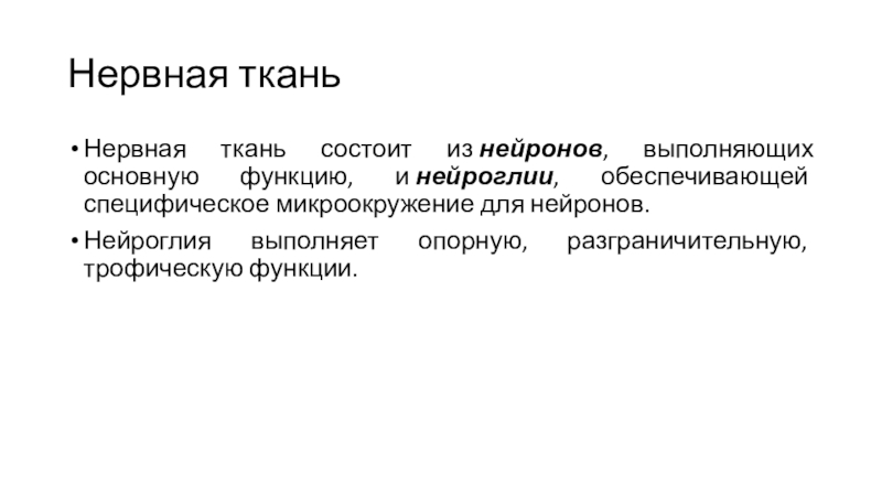 Нервная ткань состоит из нейронов, выполняющих основную функцию, и нейроглии, обеспечивающей