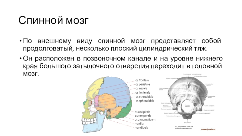 По внешнему виду спинной мозг представляет собой продолговатый, несколько