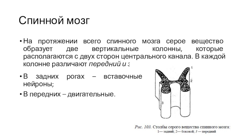 содержит нейроны и на поперечном разрезе напоминает букву Н или