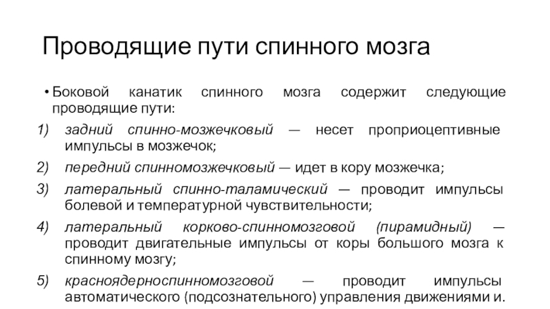латеральный спинно-таламический — проводит импульсы болевой и температурной чувствительности;