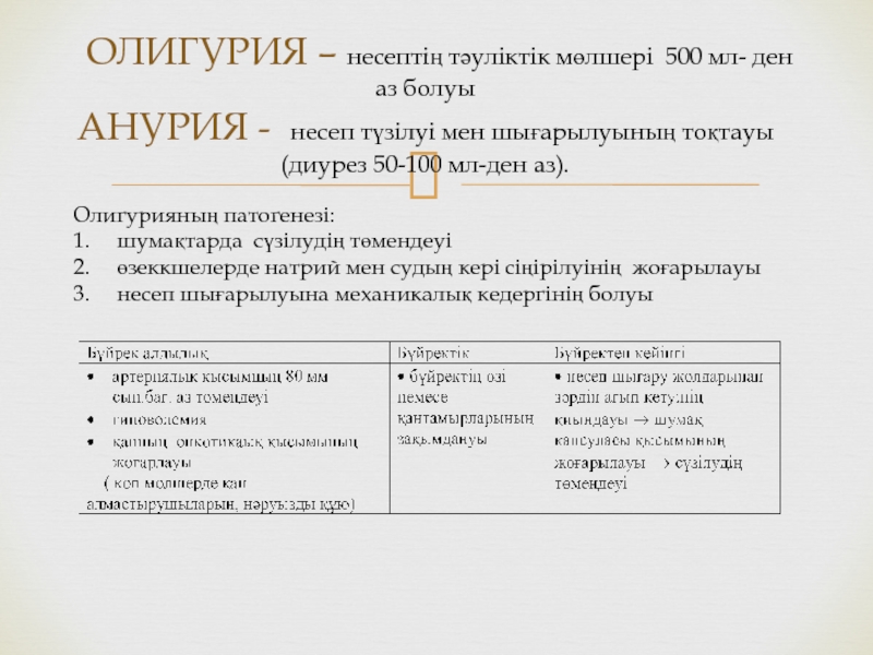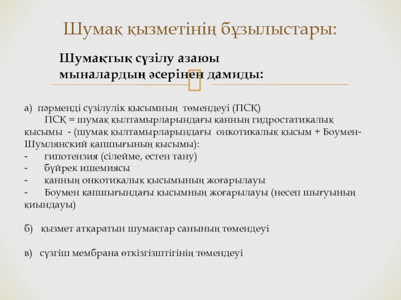 - Боумен қапшығындағы қысымның жоғарылауы (несеп шығуының қиындауы)