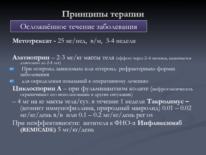 При «стероид-зависимых» или «стероид- рефрактерных» формах заболевания