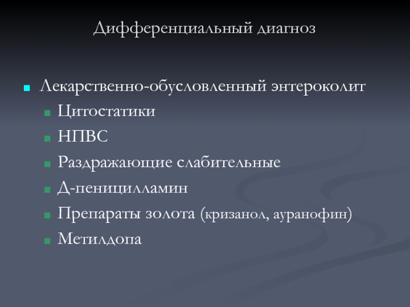 Циклоспорин А – при фульминантном колите (нефротоксичность ограничивает его использование в других ситуациях)