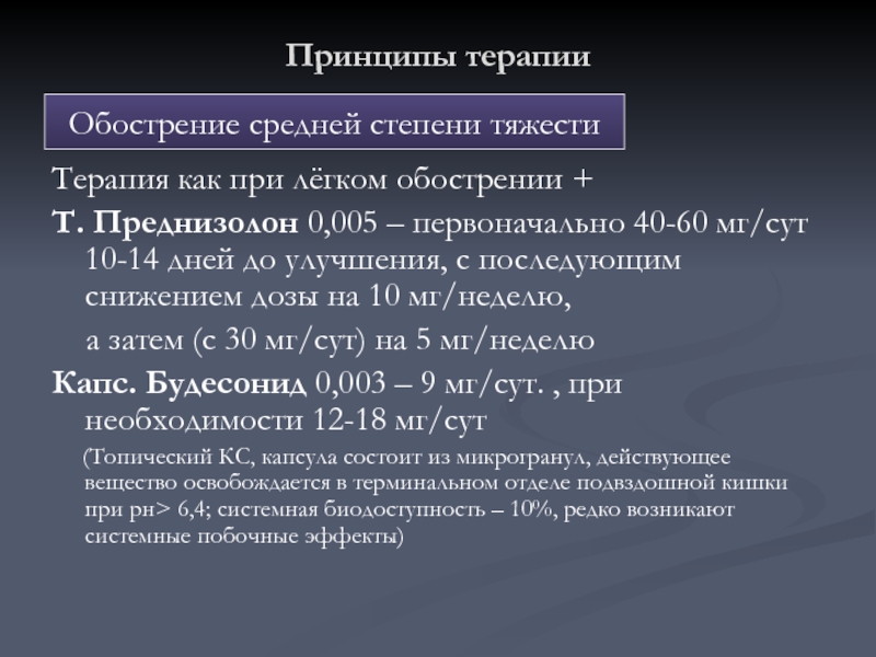преднизолона 10 мг/день (или будесонид ниже 3 мг/день) на протяжении