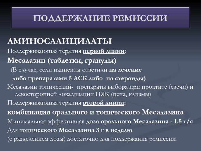 (Изолированные оральные аминосалицилаты менее эффективны)