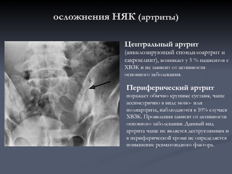 Центральный артрит (анкилозирующий спондилоартрит и сакроилиит), возникает у