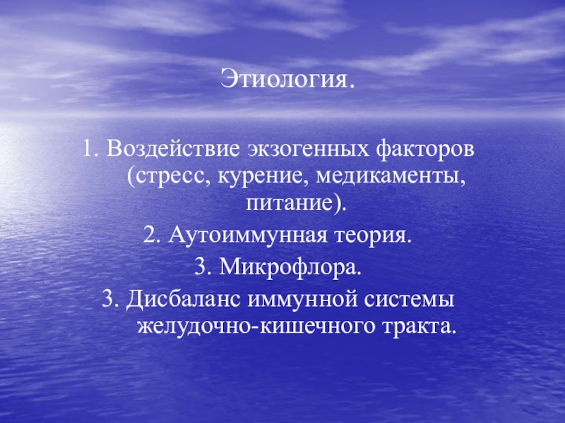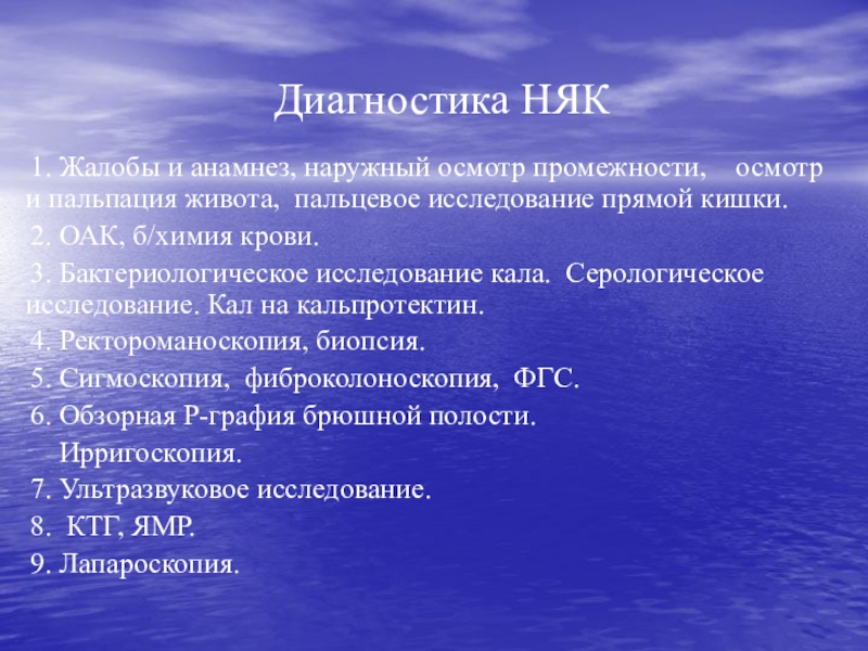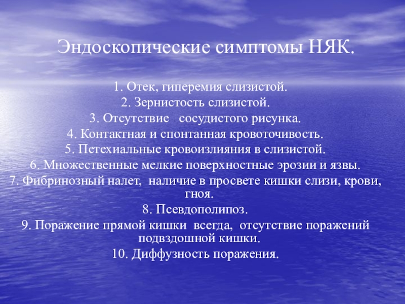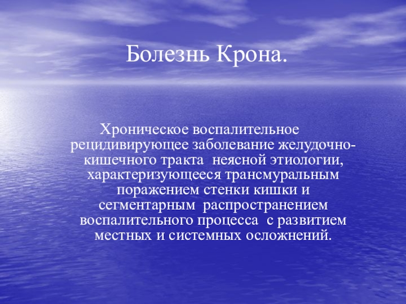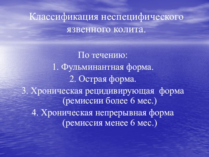 Слайд 1Неспецифический язвенный колит – воспалительное заболевание кишечника неизвестной этиологии, характеризующееся