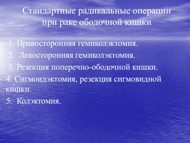 Слайд 50Стандартные радикальные операции при раке ободочной кишки
