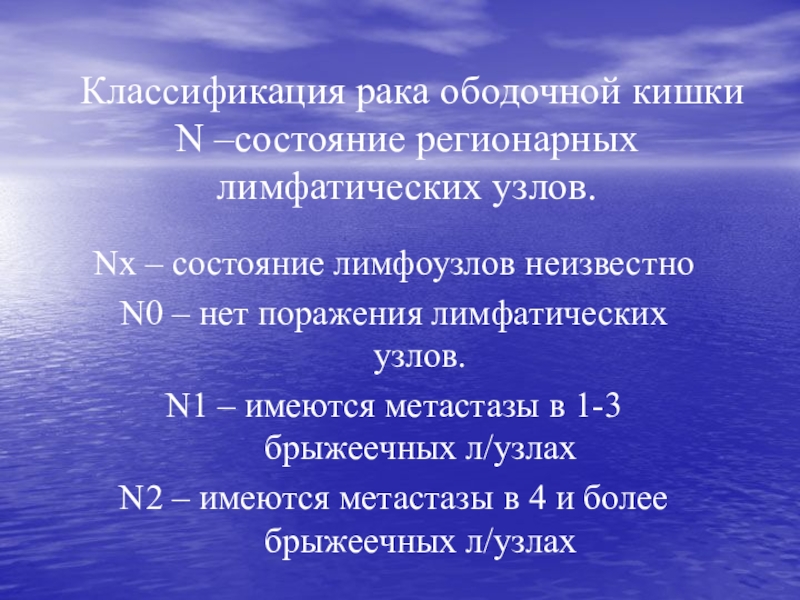 N2 – имеются метастазы в 4 и более брыжеечных л/узлах