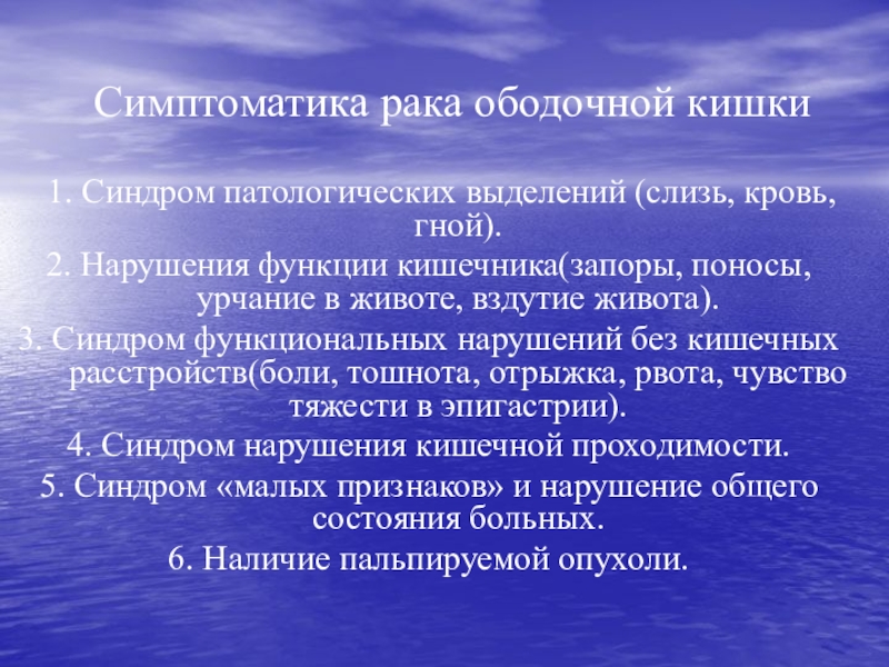 5. Синдром «малых признаков» и нарушение общего состояния больных.
