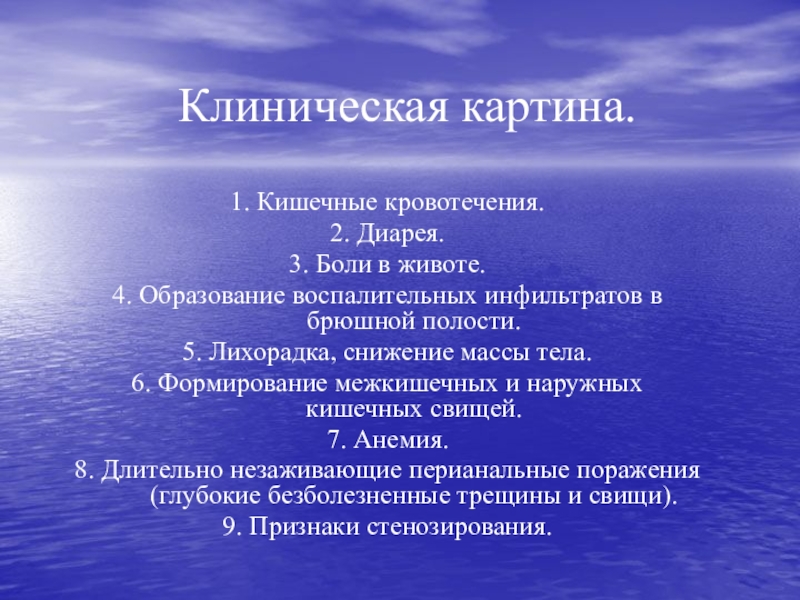 9. Поражение прямой кишки всегда, отсутствие поражений подвздошной кишки.