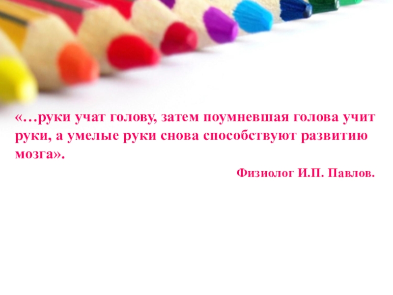 Слайд 2«…руки учат голову, затем поумневшая голова учит руки, а умелые