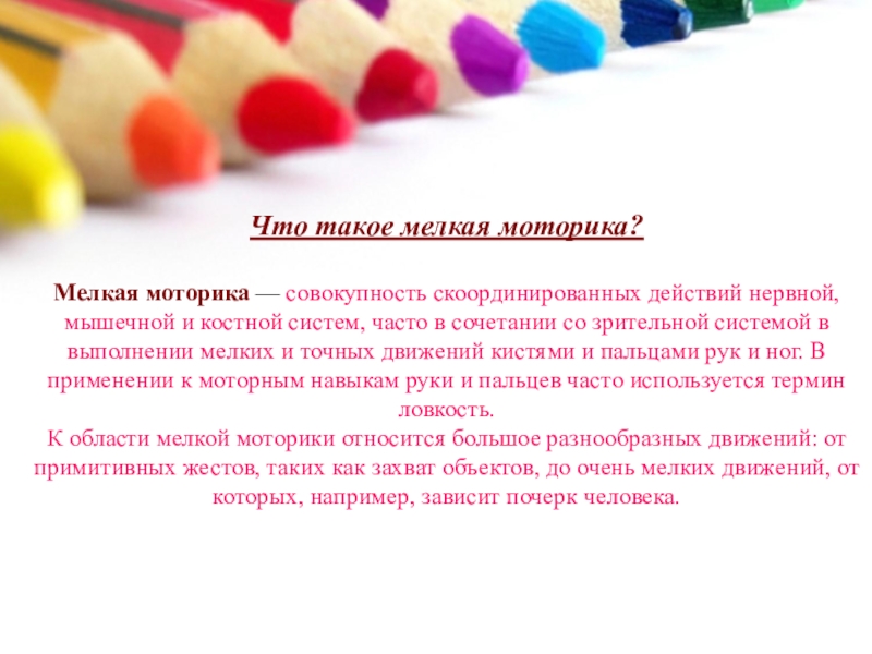 Мелкая моторика — совокупность скоординированных действий нервной, мышечной