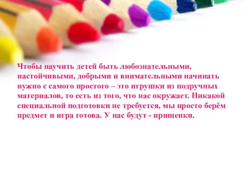то есть из того, что нас окружает. Никакой специальной подготовки не требуется, мы просто берём предмет и игра готова. У нас будут - прищепки.