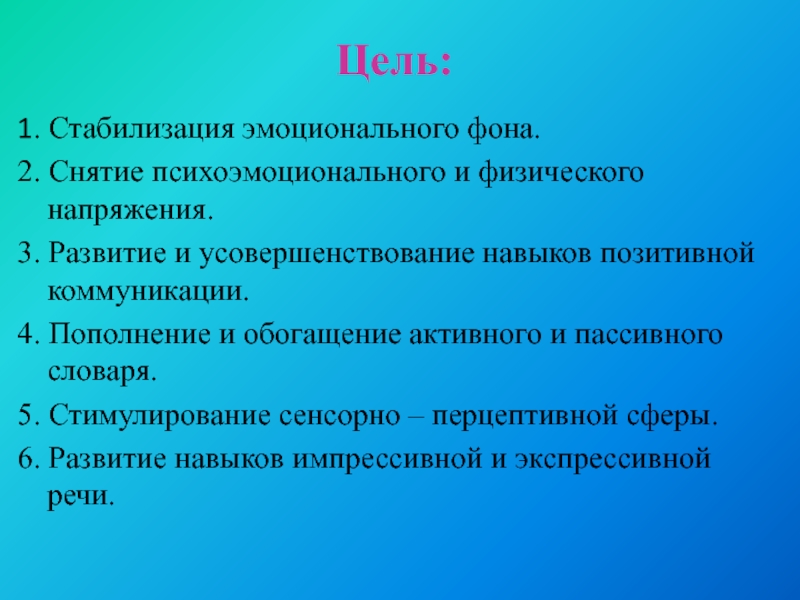 6. Развитие навыков импрессивной и экспрессивной речи.