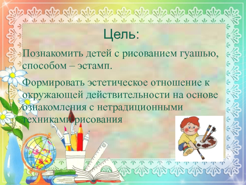 Познакомить детей с рисованием гуашью, способом – эстамп.