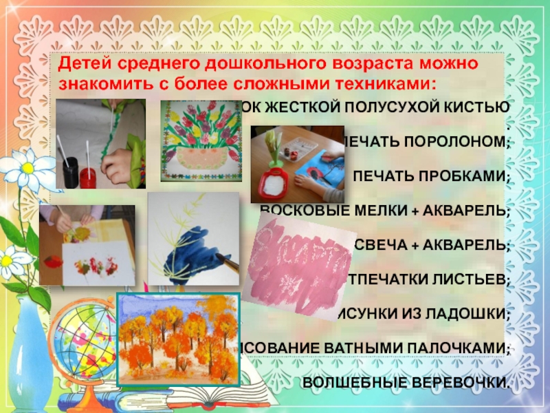 Детей среднего дошкольного возраста можно знакомить с более сложными техниками: