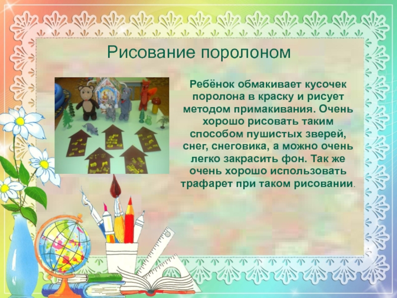 нетрадиционных техник рисования и способам изображения с использованием различных материалов.
