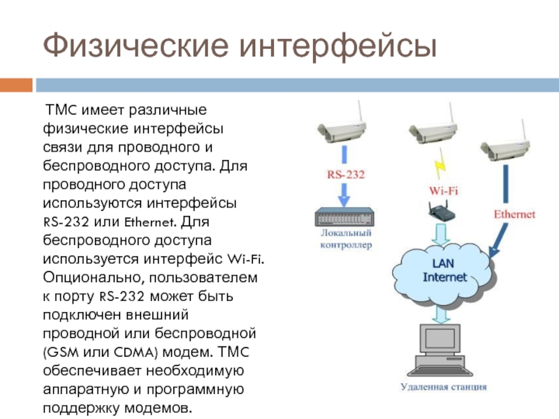 ТМC имеет различные физические интерфейсы связи для проводного и