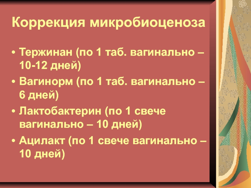 Тержинан (по 1 таб. вагинально – 10-12 дней)