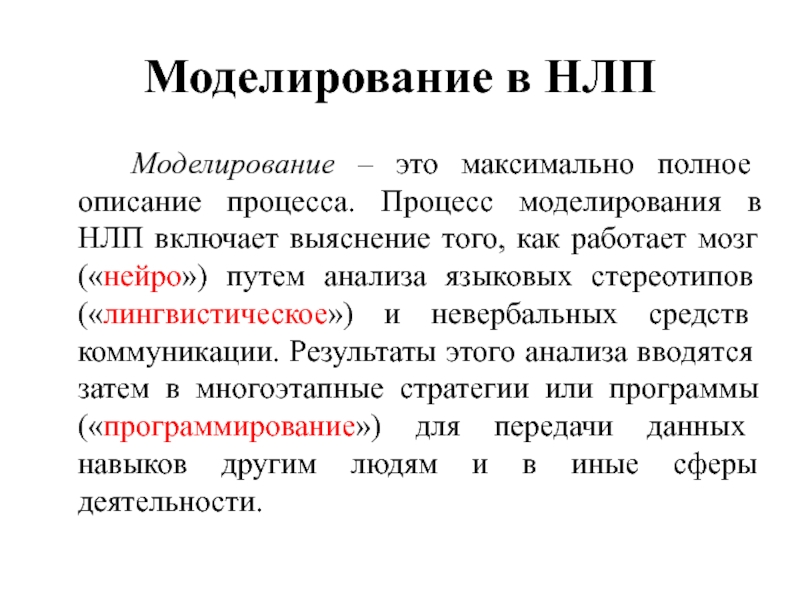 процесса. Процесс моделирования в НЛП включает выяснение того, как работает
