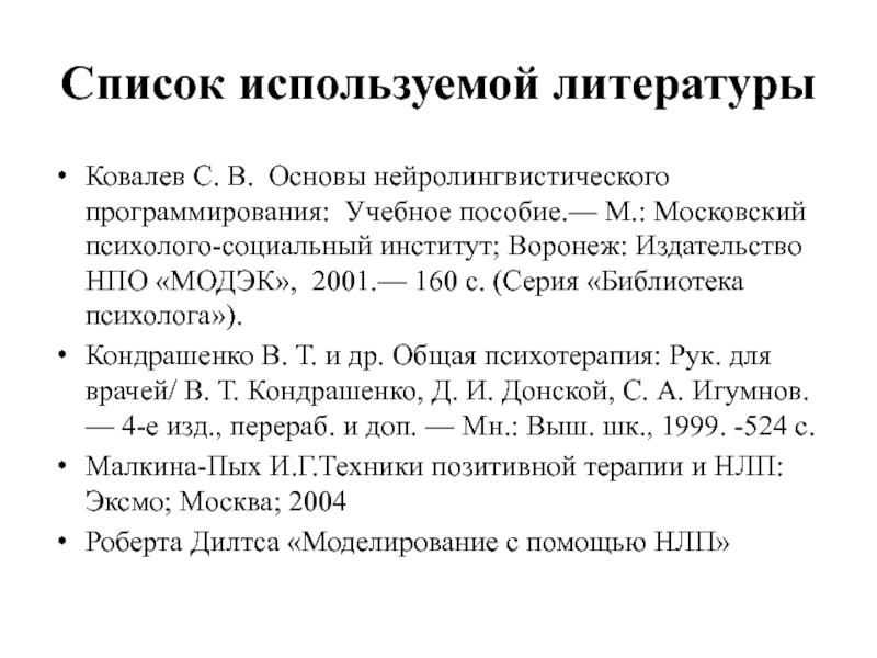 Ковалев С. В. Основы нейролингвистического программирования: Учебное пособие.—