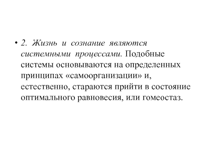 Слайд 72. Жизнь и сознание являются системными процессами. Подобные системы основываются