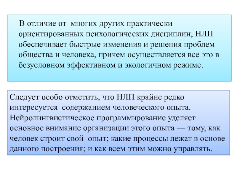 дисциплин, НЛП обеспечивает быстрые изменения и решения проблем общества и