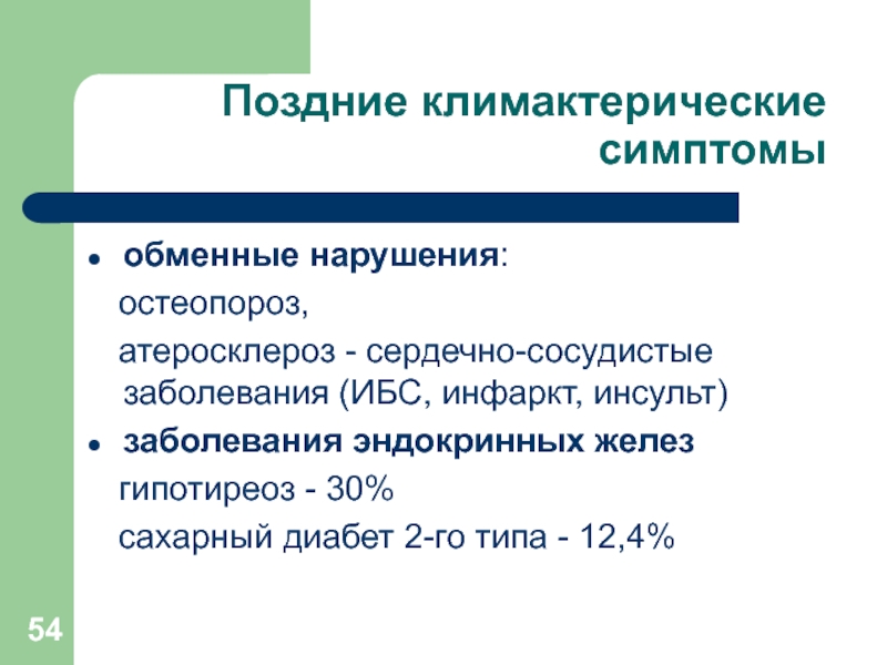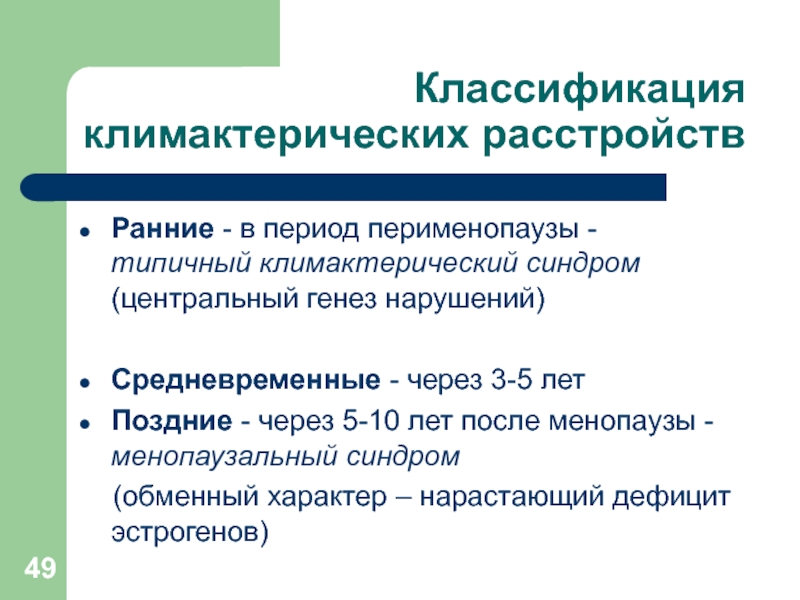 Поздние - через 5-10 лет после менопаузы - менопаузальный синдром