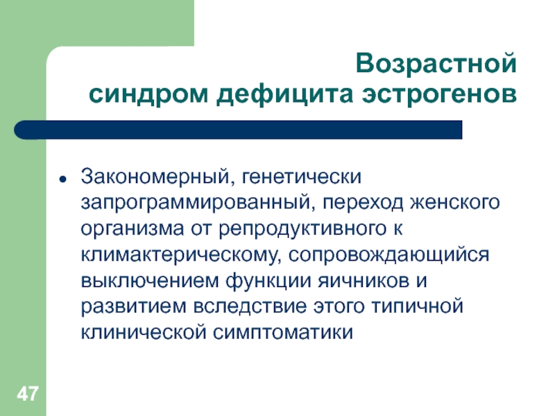 репродуктивного к климактерическому, сопровождающийся выключением функции яичников и развитием вследствие