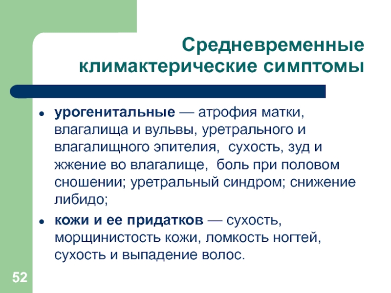 урогенитальные — атрофия матки, влагалища и вульвы, уретрального