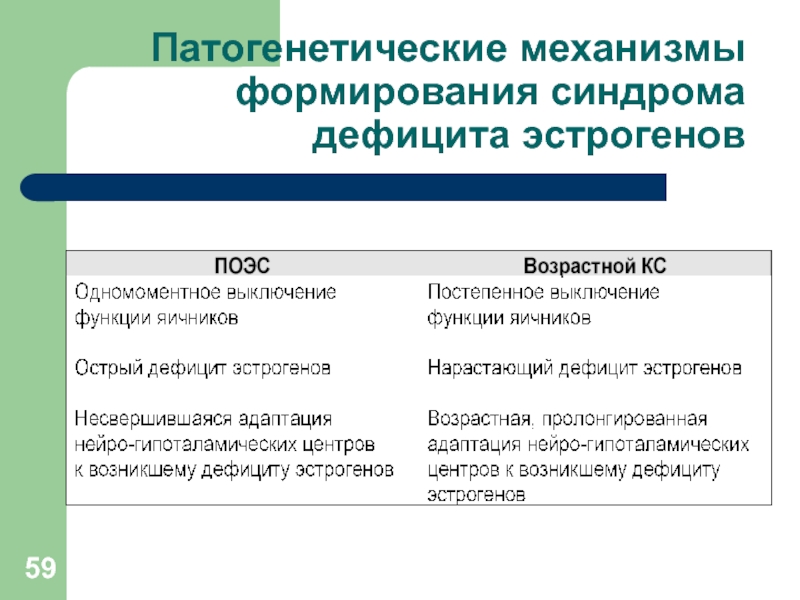 Слайд 59Патогенетические механизмы формирования синдрома дефицита эстрогенов