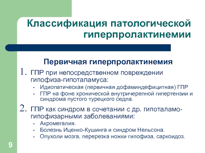 Слайд 14Этиологические факторы развития гиперпролактинемии