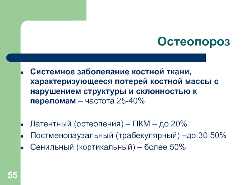 Системное заболевание костной ткани, характеризующееся потерей костной массы с нарушением